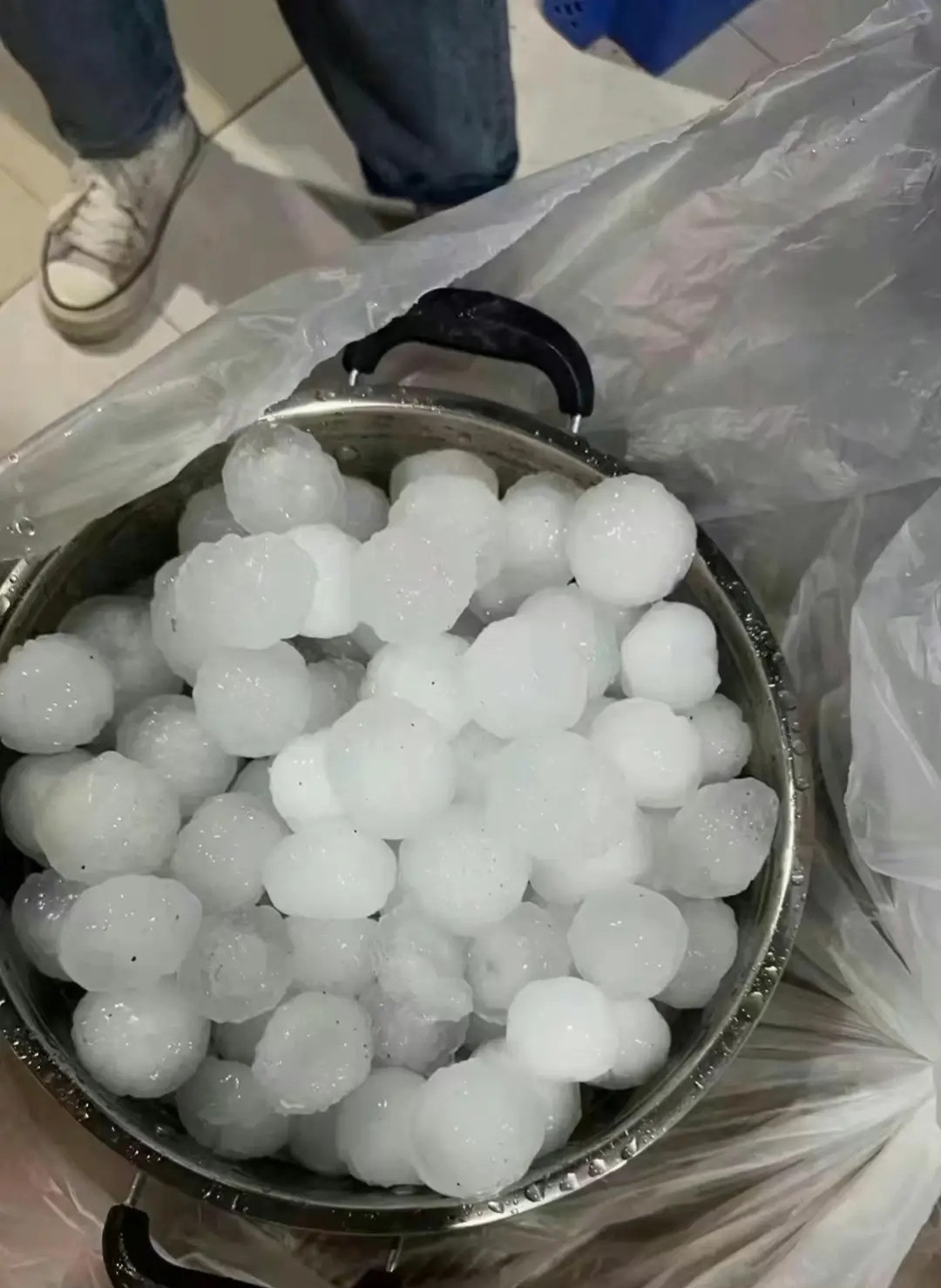 广州下罕见特大冰雹,市民损失惨重,广州网友发出图片,太吓人了