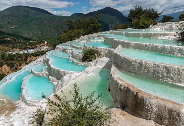 云南弥勒白水台是一处独特的自然景观,由碳酸钙沉积形成,台地上的泉水清澈透明,景色秀美。在这里,您可以领略到自然界的奇特现象,感受到大自然的鬼斧神工。