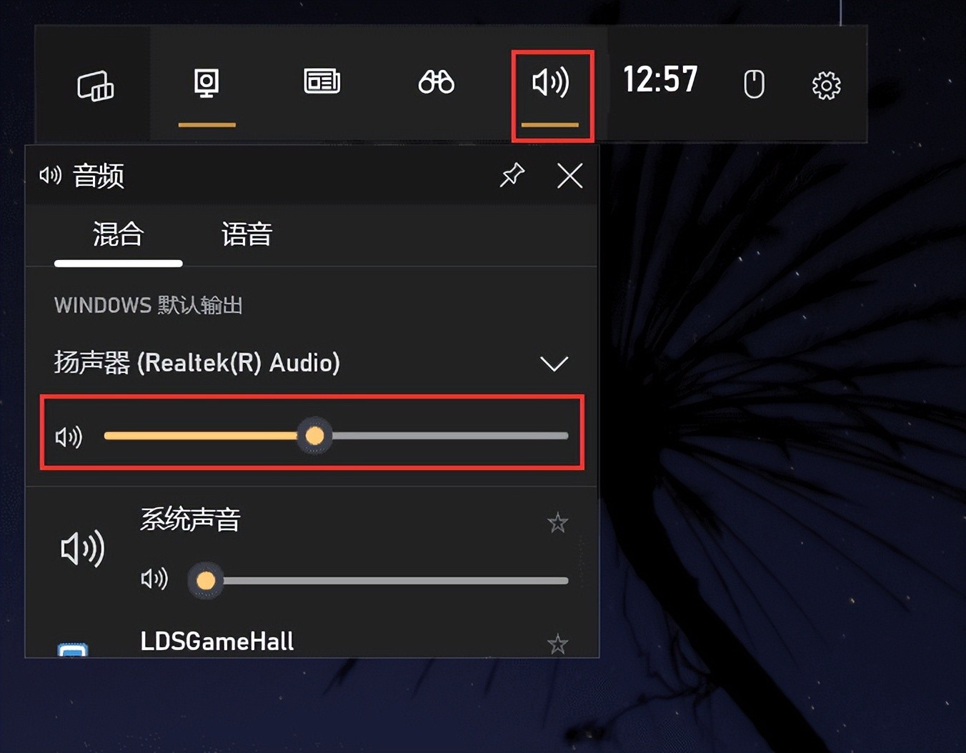 步骤2:在Xbox Game Bar中,点击“音频”图标,在弹出的音频设置中,把扬声器声音打开。