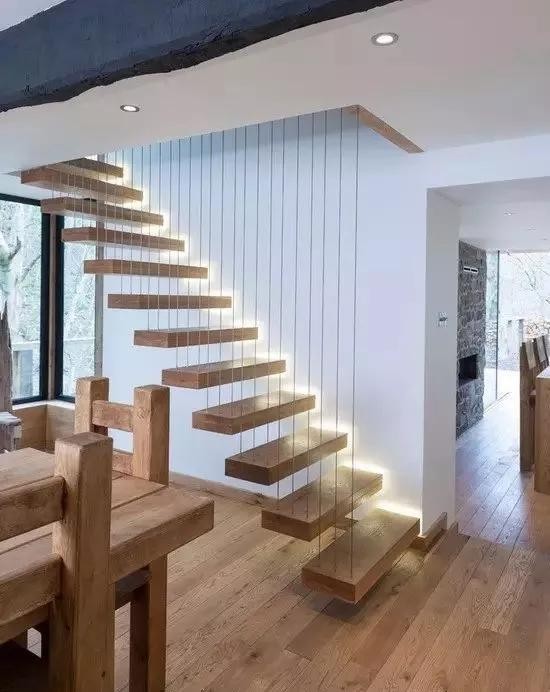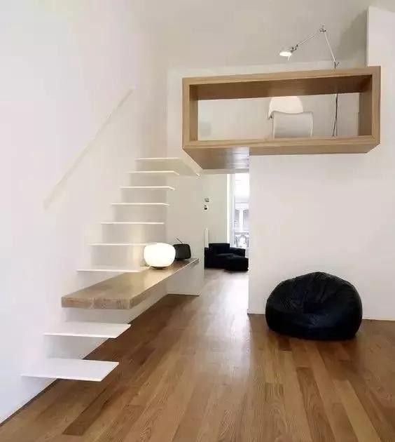 如果你希望楼梯不要占太大的空间,可以把楼梯设计的简单小巧一点,极简风格的楼梯是个不错的选择。