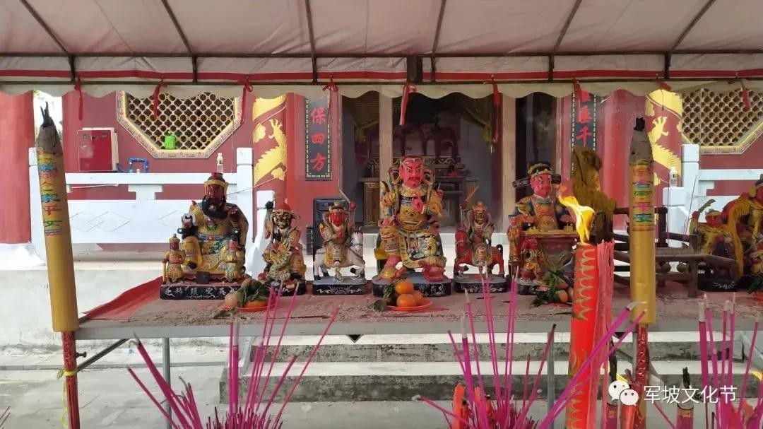 军坡节(农历正月上旬至三月中旬)闹军坡是海南人特有的风情习俗。海南有军坡大过年一说,较大的军坡庙会有梁沙婆祖军坡、屯昌屯城镇圣德娘娘军坡和屯昌的枫木军坡,万宁龙滚芋头军坡。军坡节时,村中都要选一个较大的场地来“装军”演戏,同时招待亲朋好友一同度过节日。每个地方都会有属于自己的峒主公偶象,军坡节日期也都不同,所以当天会有来自其他地方的峒主公偶象来一起同乐。