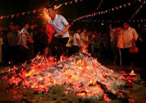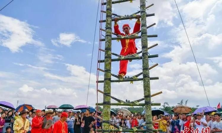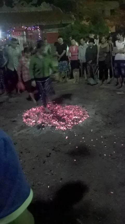 下午2-3点左右集合到各自村里的公庙,开始祭祀仪(祭祀表演有上刀梯、过火山、装军、穿杖等等)。
