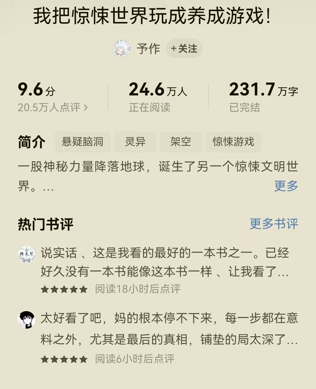 2、《我把惊悚世界玩成养成游戏》作者:予作