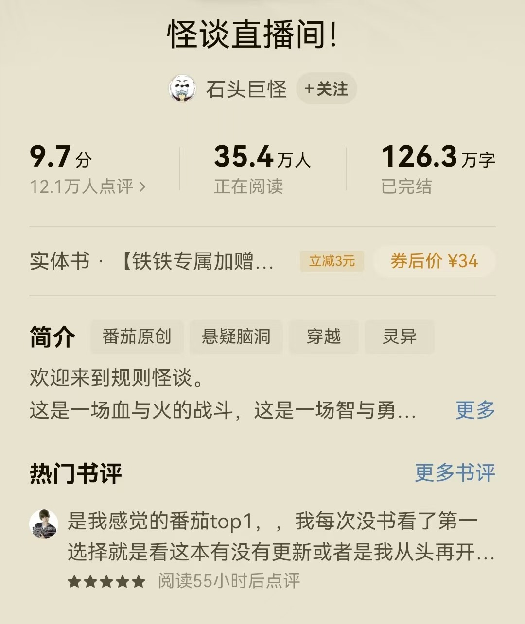 1、《怪谈直播间!》作者:石头巨怪