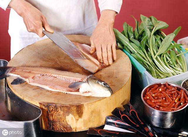 以前制作鱼片菜,都是将鱼肉打 成薄片后,先漂水再浆制。为了保持 鱼肉的本味,初加工时不要给鱼片漂 水,而是直接浆制。