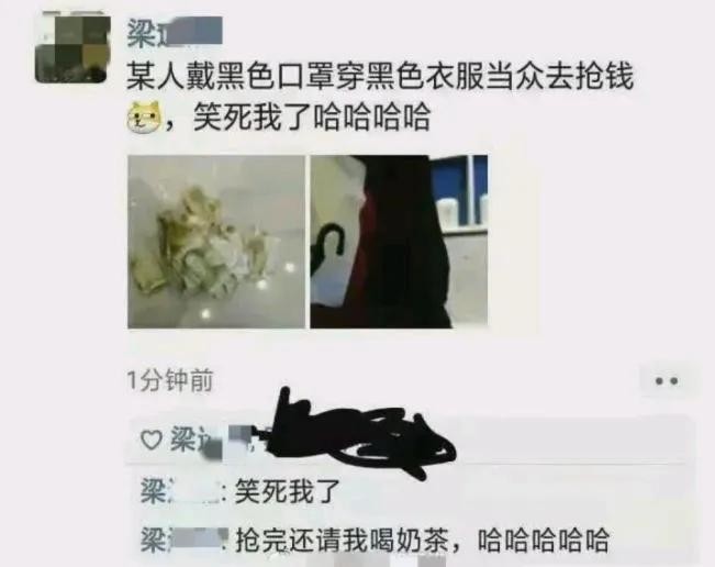 某人戴黑色口罩当众去抢钱,笑死我了。