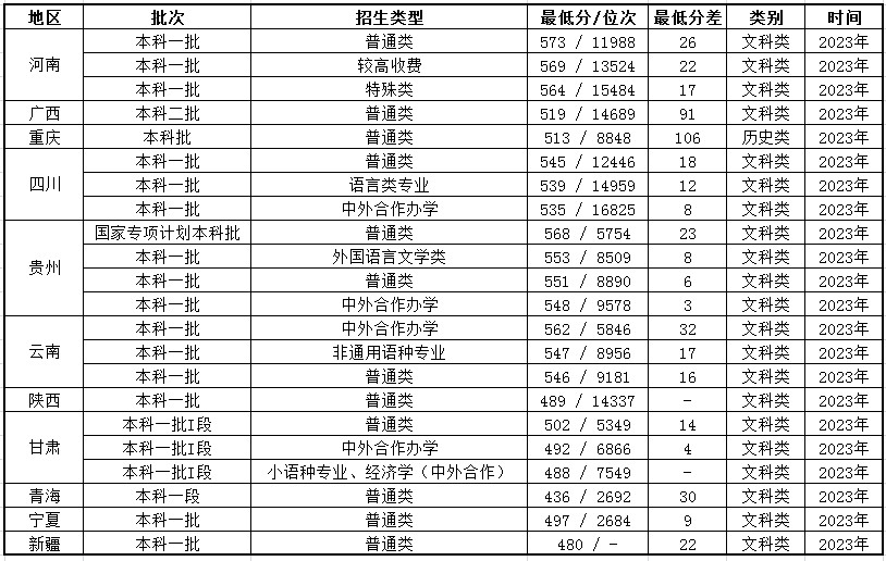 通过以上的高考录取情况,我们发现天津外国语大学不管是文科类还是理科类招生主要录取的批次为“一本”批次,仅在广西自治区为“二本”批次,在山西地区为“一本”和“二本”兼招。招生的类型主要包括普通类、国家专项计划、小语种以及中外合作办学等方式类型。