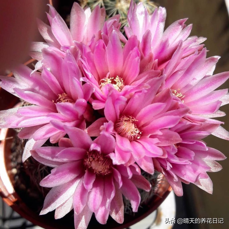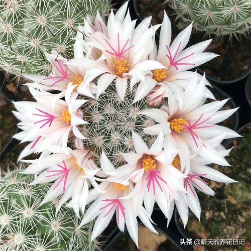 怎么样,看了这些图是不是觉得晴天没有忽悠你,其实通过了解之后才知道,仙人球真是一个宝藏植物,有些品种从很小很小的时候就可以开花,小的时候只开一朵,但是如果养的足够大,那么一次也是可以开出几十朵甚至上百朵花的,真的是开爆盆,都看不到下面的球球了,非常的漂亮!