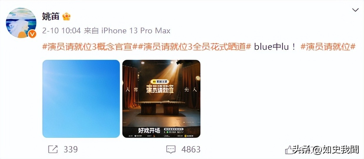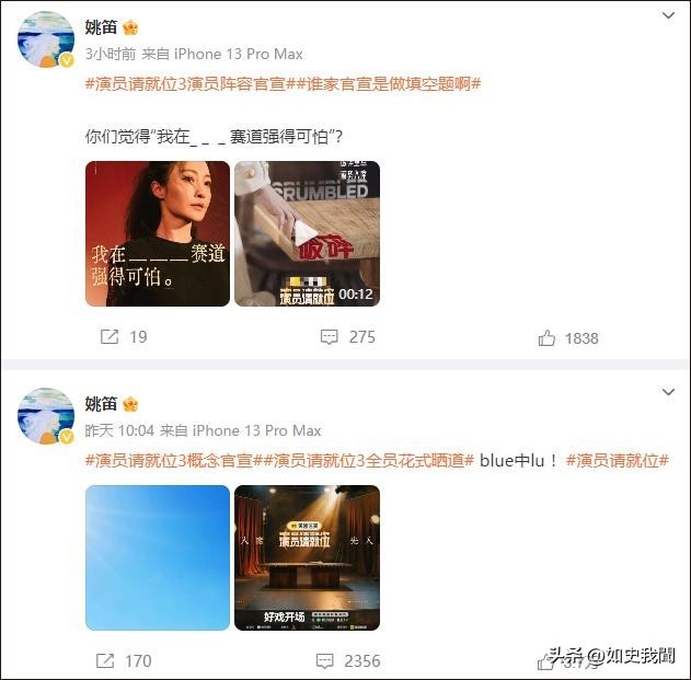 姚笛参加《演员请就位3》节目播出后镜头被删,之前发微博进行宣传,场面属实有点尴尬。