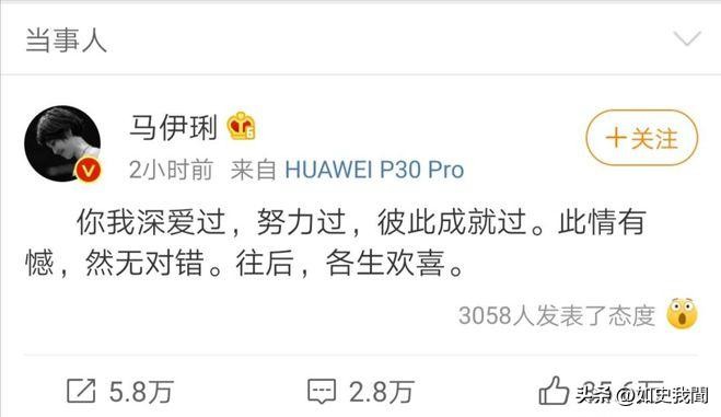 2019年7月28日,两人宣布离婚,十几年的感情走向了最终的覆灭。