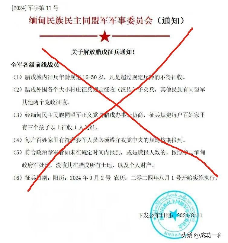 在8月11日,一些社交媒体上流出一则公告关于同盟军征兵的消息,果敢同盟军将在腊戌地区开始进行征兵,其中要求每家三个孩子出一个,并且不到的要没收家里的房子和土地,但随后该消息被称不实。不管怎么样,这则消息出来也给原本想回腊戌的居民带来了心里阴影,使得大部分逃离腊戌的居民不敢回去,担心被征兵外,害怕缅军战机会来轰炸。