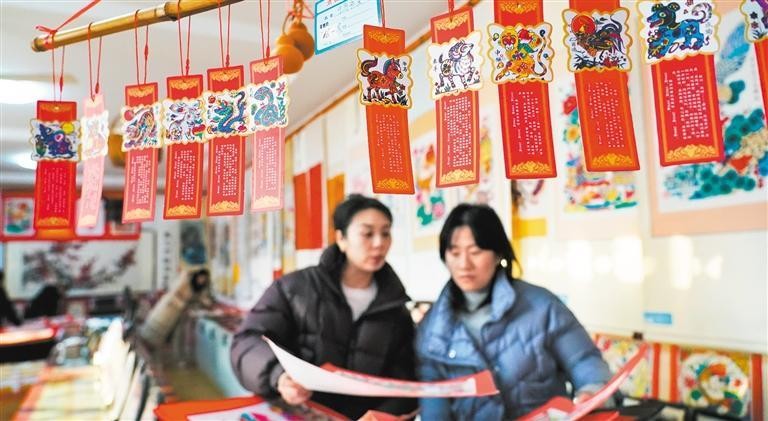 ▼2024年12月24日,游客在武强县一家年画文创店选购。