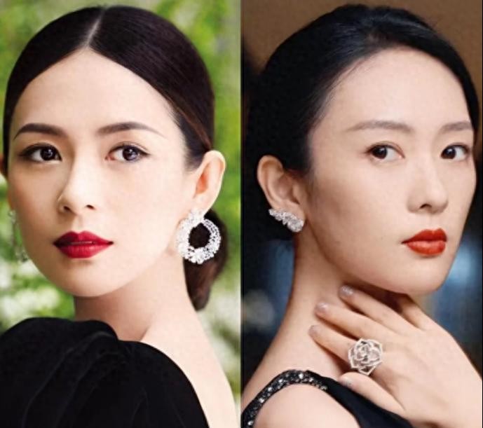 但是很明显,两个人的苹果肌都是一样的,这也就意味着如果童瑶到了章子怡的岁数,一旦显老,最容易出问题的也是苹果肌,甚至你可以在章子怡的身上看到童瑶变老之后的状态,几乎就是一个趋势。
