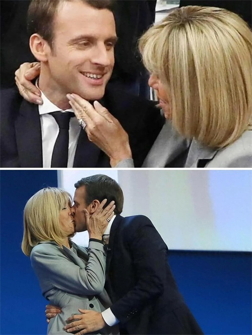 两人至今结婚十几年了,仍然像初识那般恩爱,不管走到哪里马克龙都会牵着布里吉特的手,无时无刻的都想着亲吻布里吉特。