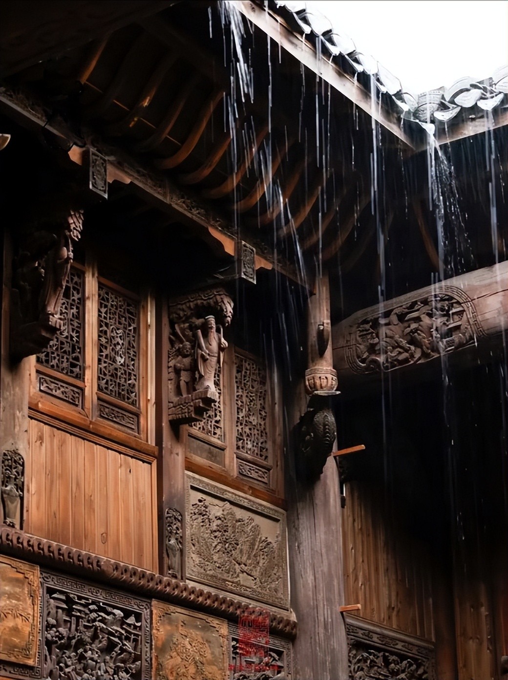 民间相传水既是财!四水归堂一方面四方之财藏蓄院内,另一方面是避免水滴落到别人家,造成麻烦,这也体现了古人在营造建筑时的涵养与担当。