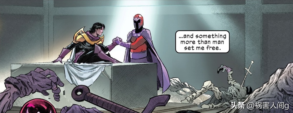 后来,出谷逃出了坟墓,他伪装成万磁王,利用能力迫使热纳沙成为变种人和人类共存的“和平”世界。结果,热纳沙再次爆发内战,一个变种人男孩和她的恋人人类少女死在了出谷的身边,出谷的意志被摧毁。。