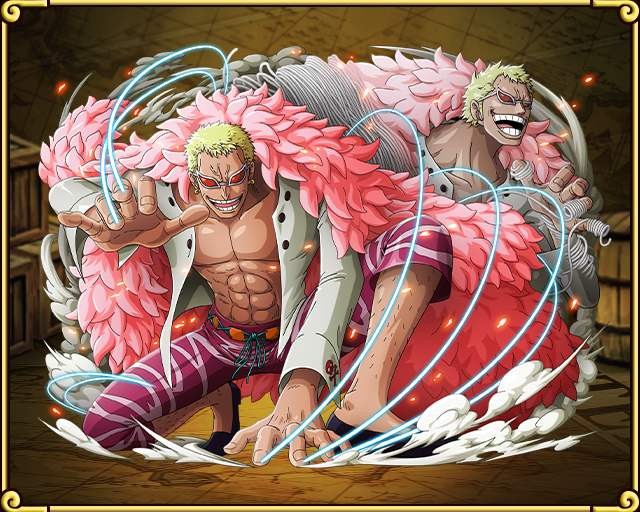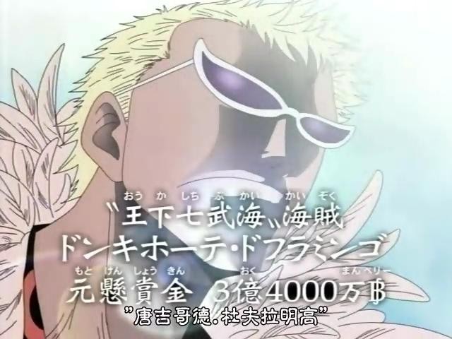 3.唐吉诃德·多弗朗明哥,外号天夜叉、joker,原悬赏金3亿4000万贝利,是线线果实能力者,是一个非常危险的人物,三色霸气全都具备,原是天龙人后裔也曾是徳雷斯罗萨的国王,知晓玛丽乔亚“秘宝”的相关秘密为天龙人所忌惮。十年前利用计谋以及果实能力夺取德雷斯罗萨成为国王,此后在地下世界从事军火生意,其势力遍布世界各地,黑白通吃,背后有四皇凯多撑腰,可以说是势力最大的七武海。