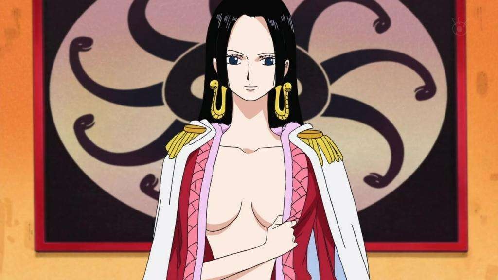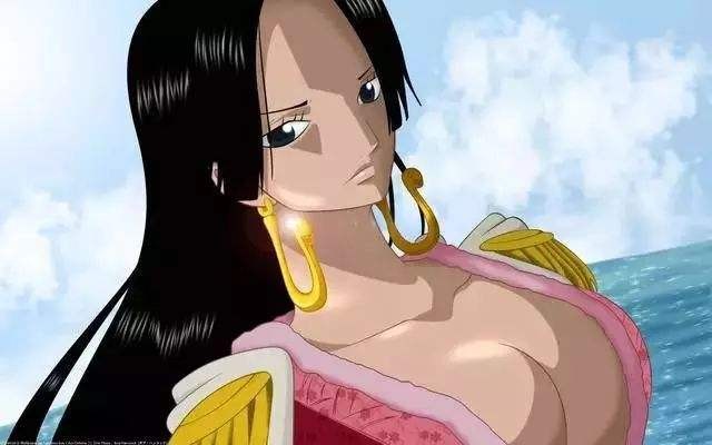 4.波雅·汉库克,外号海贼女帝、蛇姬,甜甜果实能力者,是九蛇岛的皇帝,三色霸气拥有者。童年时期曾当过奴隶,三姐妹后背有天龙人奴隶标志的纹身(飞龙之蹄),后被鱼人泰格解救逃脱。她实力强大,第一次出征就被悬赏了八千万贝利,为了保护自己的国家,选择加入七武海。