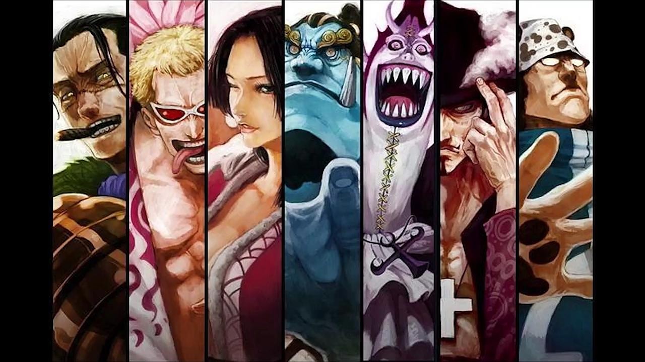 1.鹰眼米霍克、2.巴索罗米·熊、3.女帝汉库克、4.多弗朗明哥、5.克罗克达尔、6.甚平、7.莫利亚