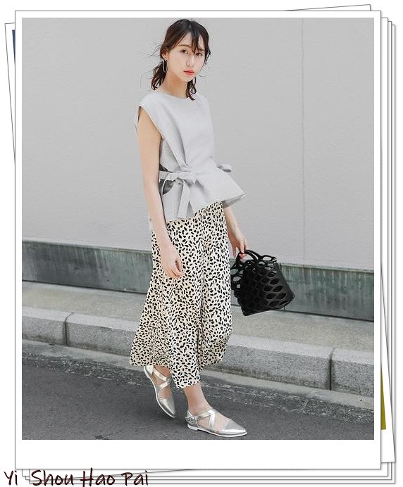 对于那些拥有无法轻易驾驭的印花上衣,建议你选择灰色为主的碎花,会很容易搭配。在平静的气氛中,它增加了适度的华丽感。搭配米色阔腿裤彰显成熟气质。
