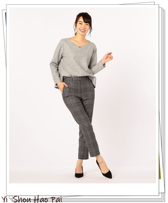 灰色上衣和格伦格纹长裤是很好的组合,具有英伦风的单色造型非常好。