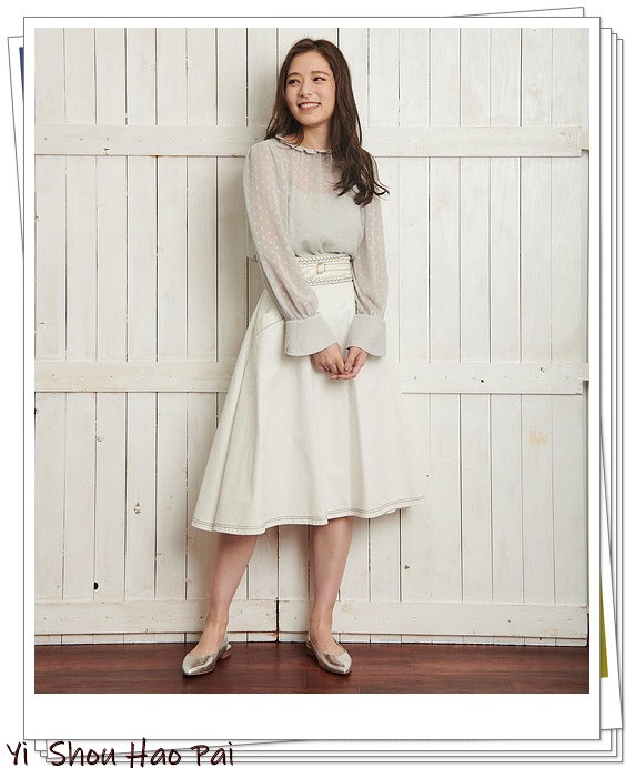 透明材料制成的灰色上衣非常适合夏季,而且显得轻熟迷人。搭配白色喇叭裙,温柔甜美。