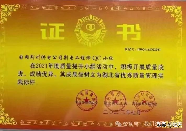 2019年,由他主创的这项荆州供电公司级管理创新课题,获得了“优秀奖”,随后,其申报的《一种带束线功能的移动检修电源箱》,也获得国家知识产权局实用新型专利证书。QC课题获得了国家电网公司2020年QC成果“三等奖”,最终荣获中国水利电力质量管理协会电力行业优秀质量管理成果“一等奖”和《中国质量》杂志社QC成果“示范级”奖。