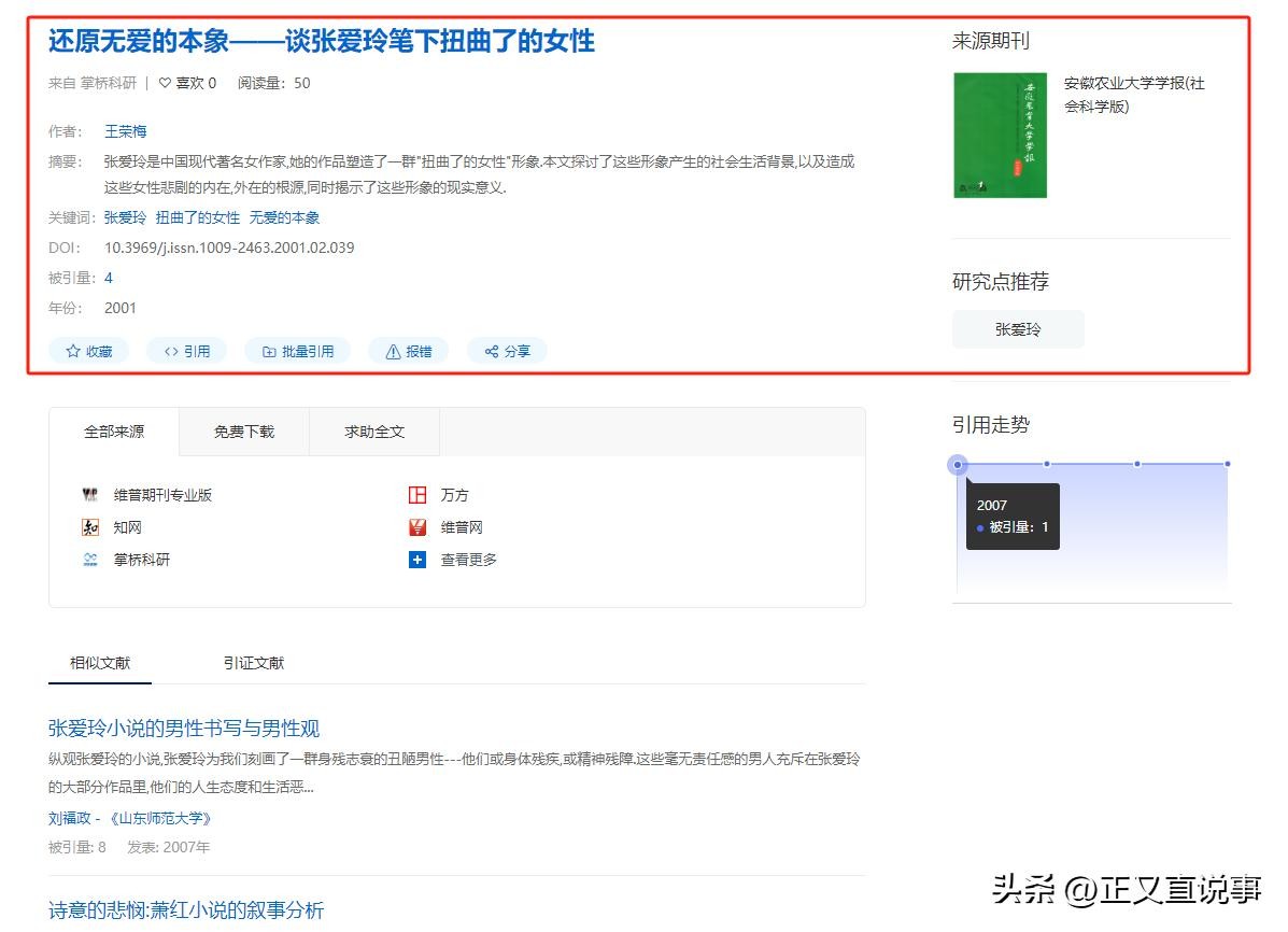 理论学刊 2007年《爱恨交织:简论张爱玲小说的父性形象》