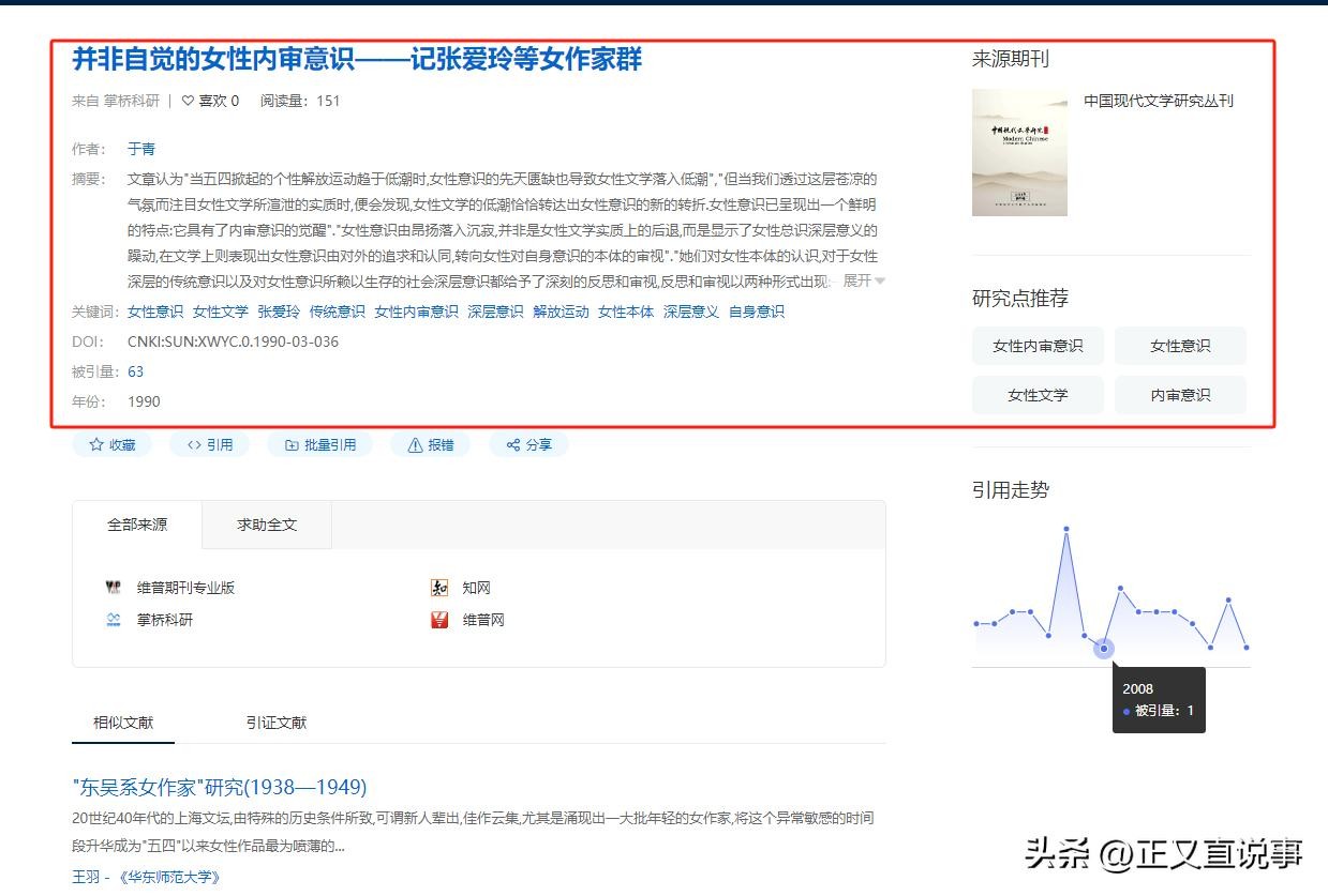 中国现代文学研究丛刊 1990年《并非自觉的女性内审意识——记张爱玲等女作家群》