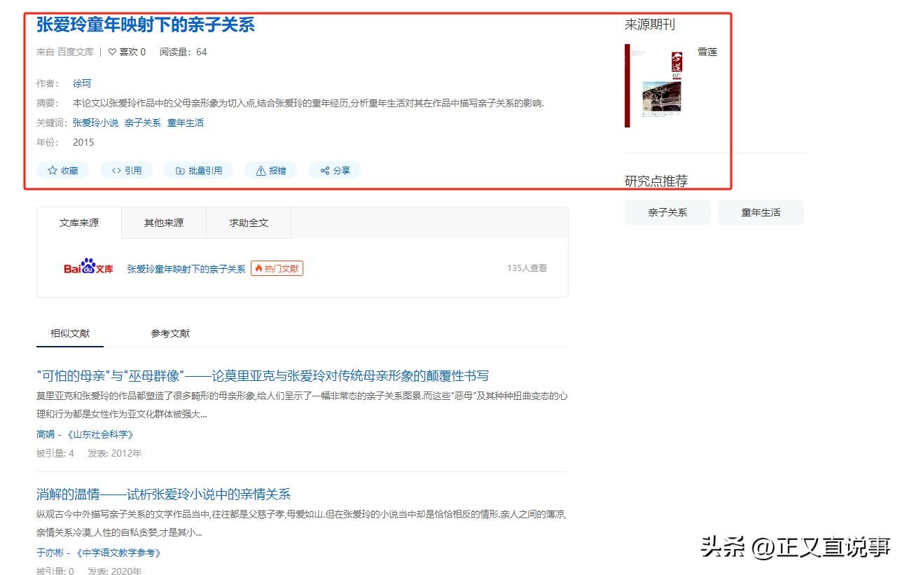 雪莲 2015年《张爱玲童年映射下的亲子关系》