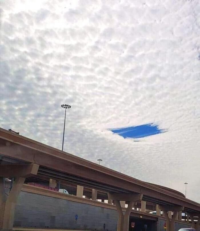 也许你从未想过头顶的天空看起来像像被刮开一样的惊奇。看起来天空决定刮掉一部分云层,为下面的人们腾出一点蓝天来享受。