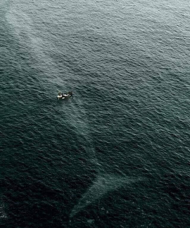 看到这幅令人不安的画面后,圣经中一个名叫约拿的人被鲸鱼活吞的故事突然变得非常可信。仿佛深灰绿色的海水还不够可怕,这小小的船还有更大的事情要操心。