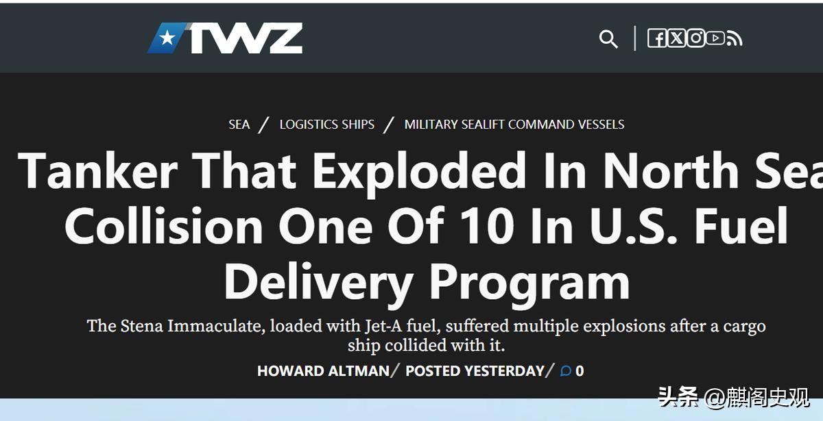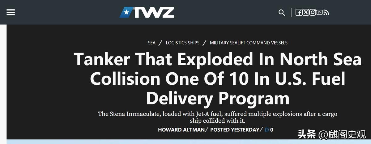 美国战区网《在北海碰撞中爆炸的油轮是美国燃料配送计划中的10艘之一》