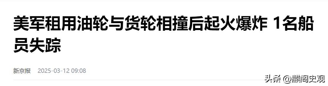 新京报2025-03-12《美军租用油轮与货轮相撞后起火爆炸 1名船员失踪》