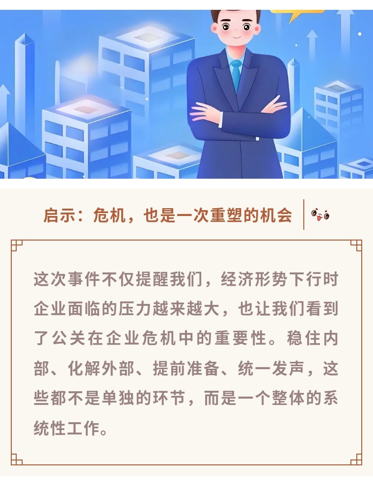 这再次提醒我们公关人员,在任何情况下都应保持专业和克制,避免发表可能损害企业形象和声誉的言论,在危机中,信息的出口应简单准确,不带歧义。