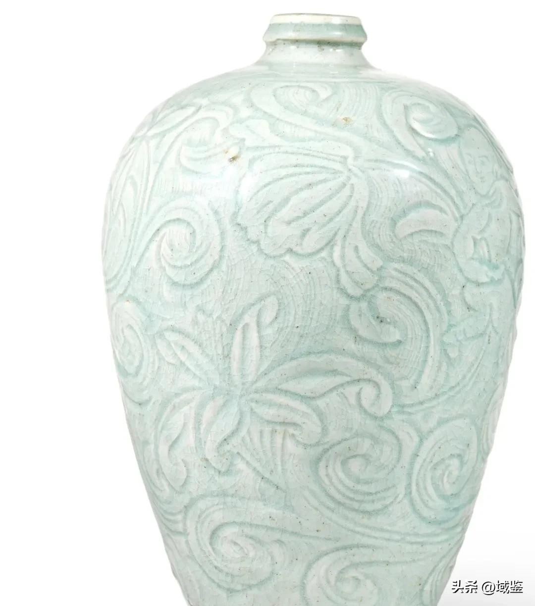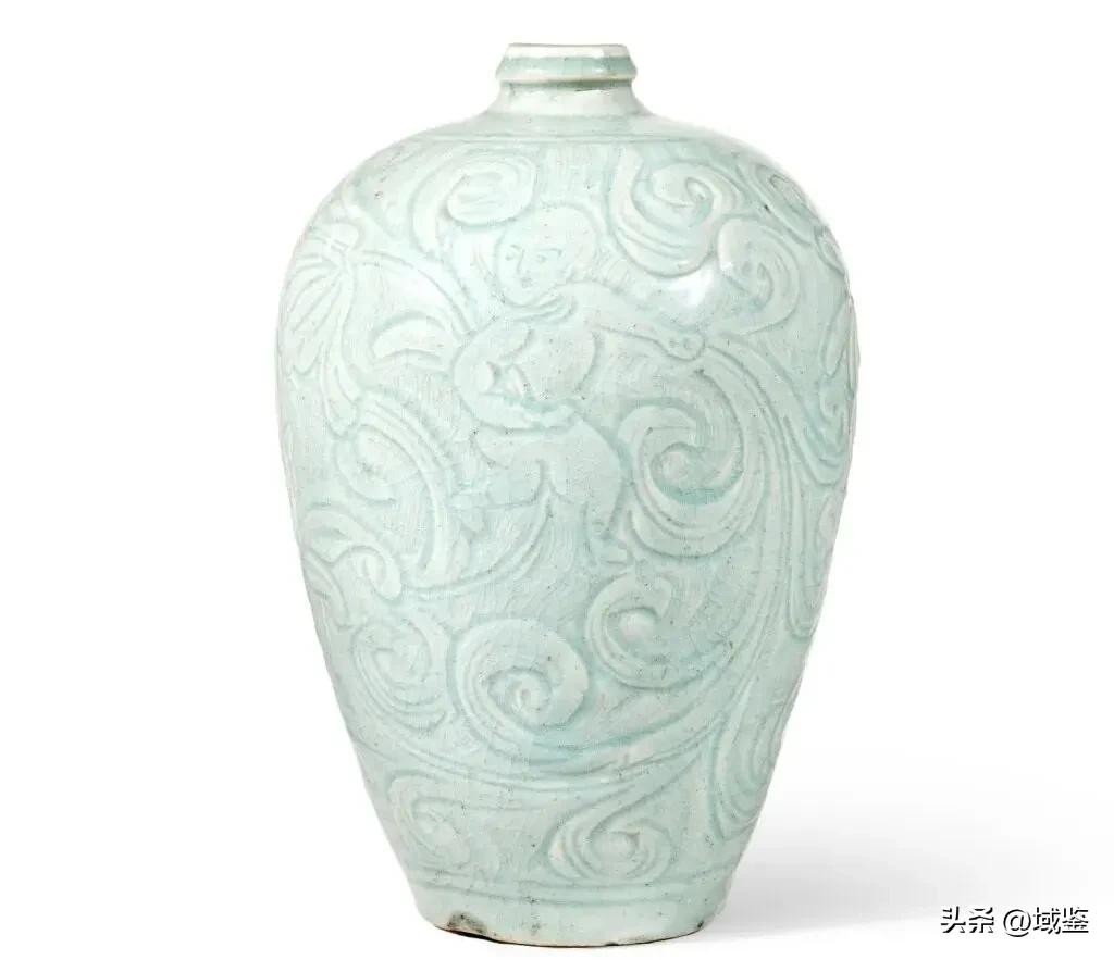 下面再来看看南宋时期的“青白釉划花童子花卉纹梅瓶”,造型挺拔秀美,釉色青白相间,温润如玉。其典型特征包括小口、短颈、丰肩、瓶体修长,整体造型如少女般优美。