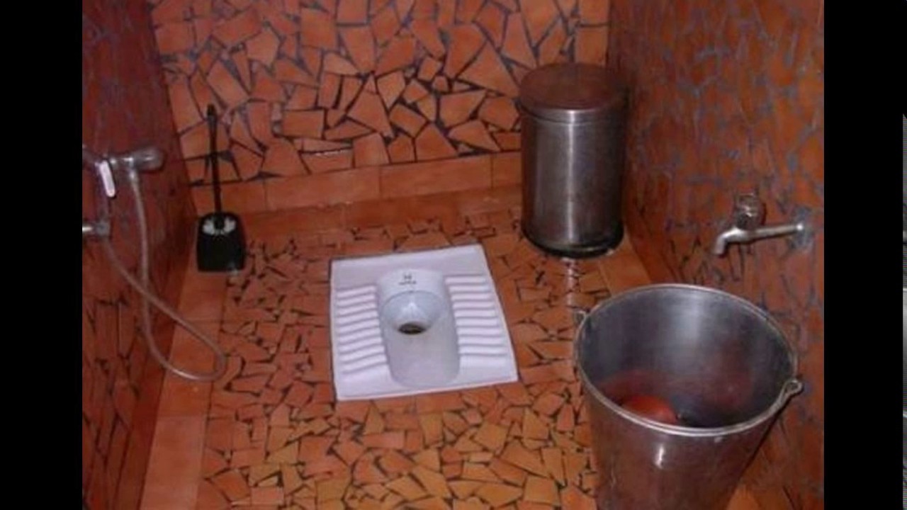 一般印度正规的厕所,标配是一个马桶、一个水桶和一个水瓢,水瓢舀水,手沾水洗屁股,直到洗干净。