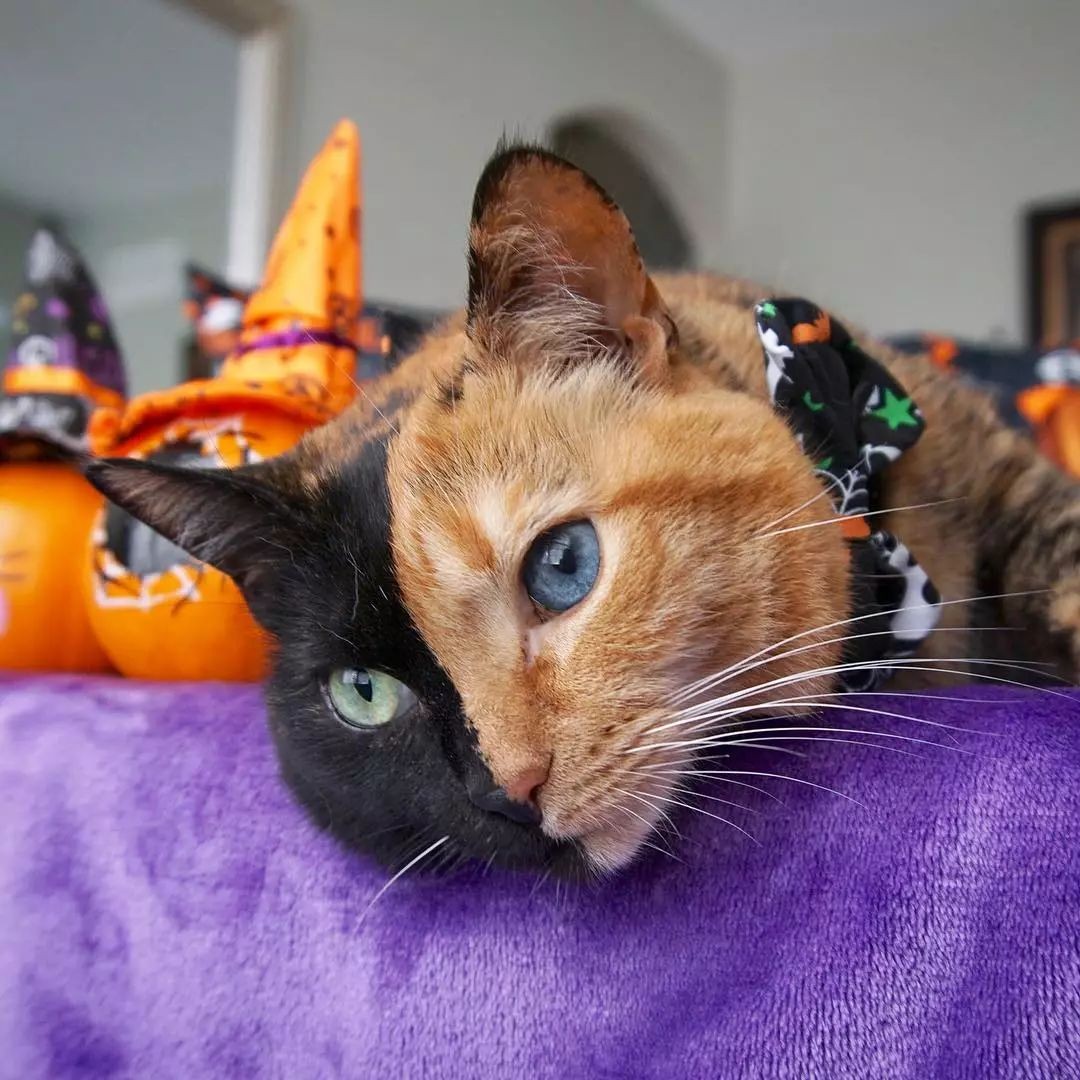 讲真,这脸能这么泾渭分明的那真是感叹大自然的鬼斧神工了,而且还是鸳鸯眼!