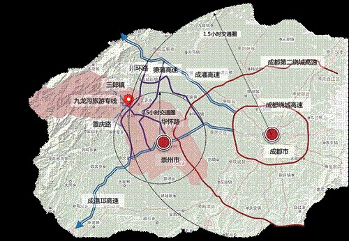 崇州靠近成都双流区,与新津、大邑、都江堰、汶川毗邻。全市面积1090平方公里,辖9个镇、6个街道办事处,户籍人口66万,常住人口75万,为全国县域旅游发展百佳县,并排名第8位。