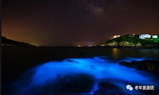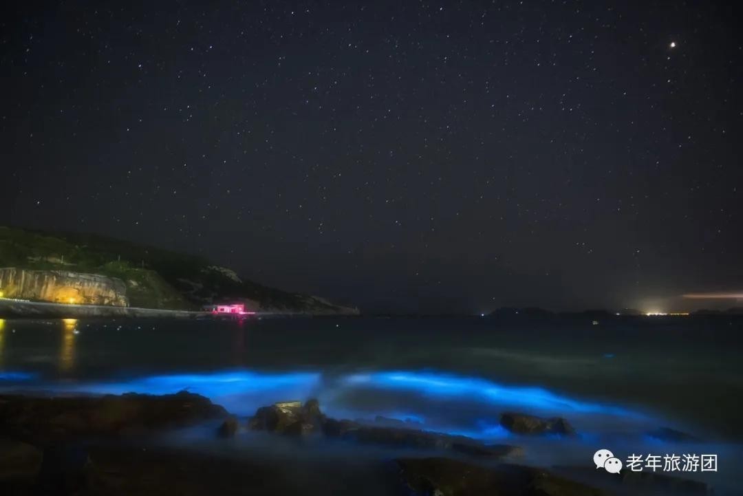 晶莹剔透的蓝色光芒在海面上一闪一闪,