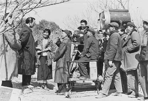 导演谢铁骊孙道临和谢芳在影片拍摄现场