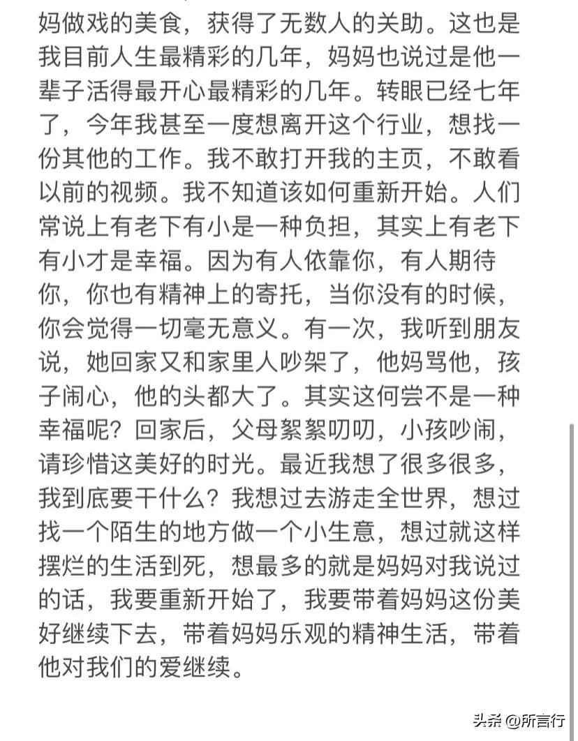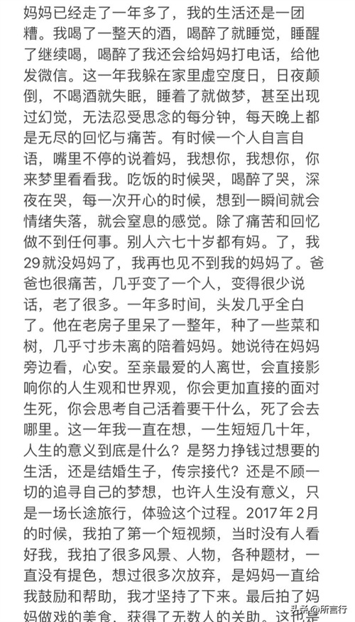 因为小强母亲的离去,小强账号整整停更了一年多时间,中途偶尔更新,也是关于自己母亲的生日等等。