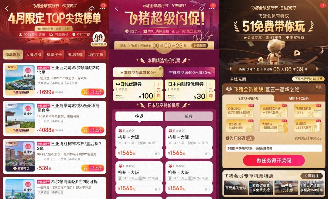 4月8日,飞猪4月“全球旅行节”开启,旅游商家们开始提前聚拢“五一”消费需求,锁定暑期、秋季等中远期客流。
