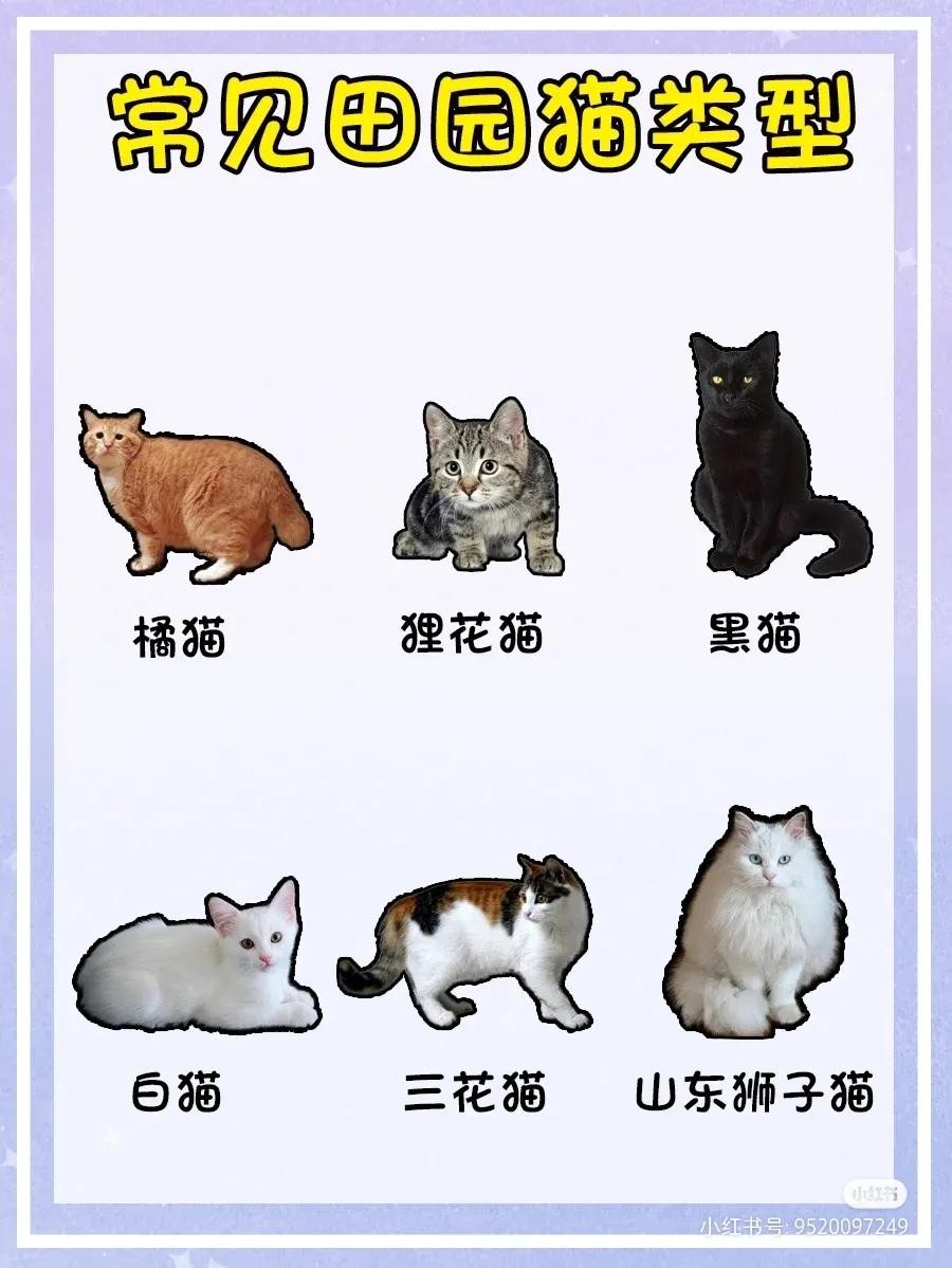 常见种类:橘猫(胖橘)、狸花猫、黑猫、白猫、三花猫,狮子猫
