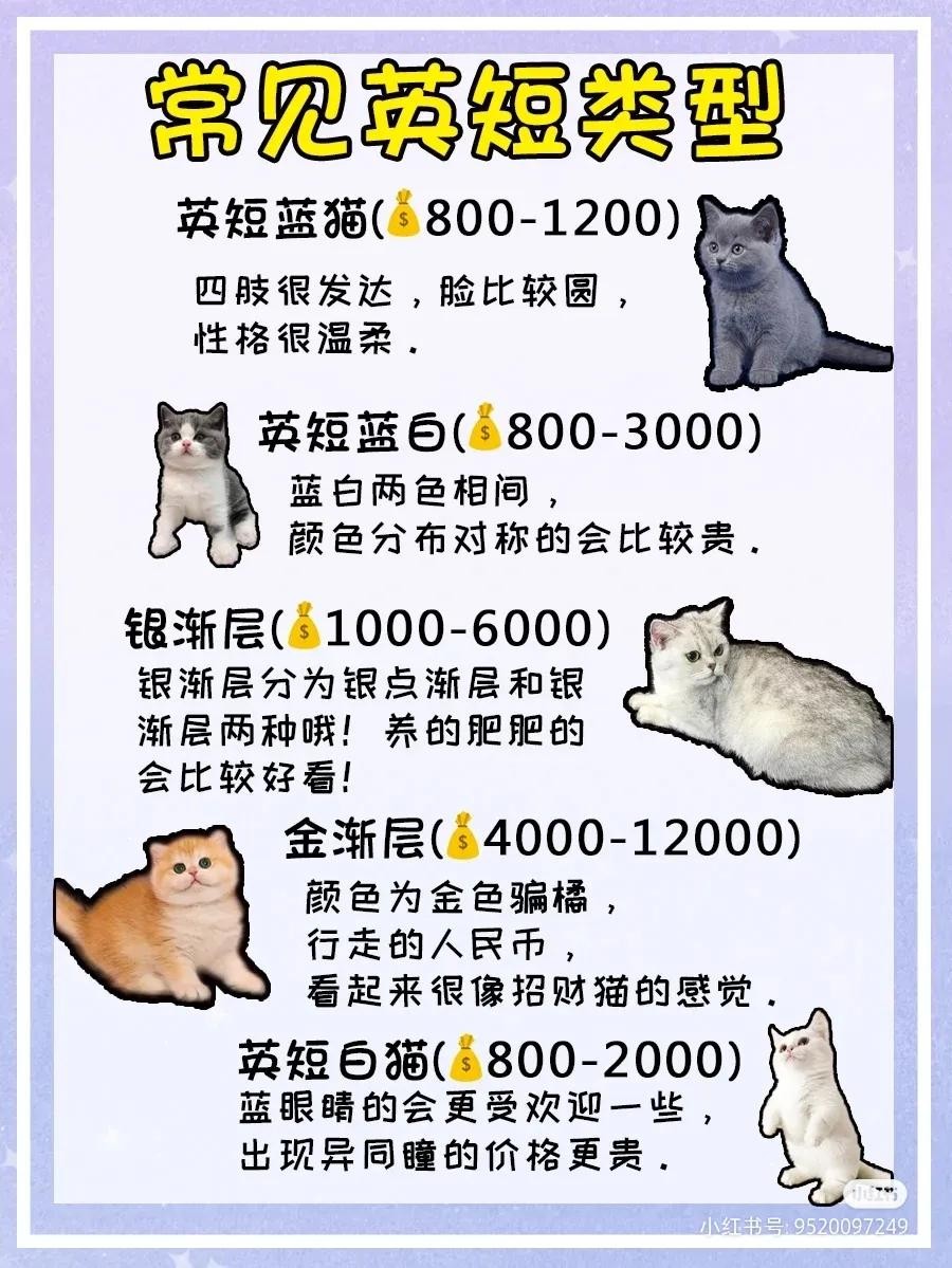 常见种类:蓝猫、白猫、蓝白、金渐层、银渐层。