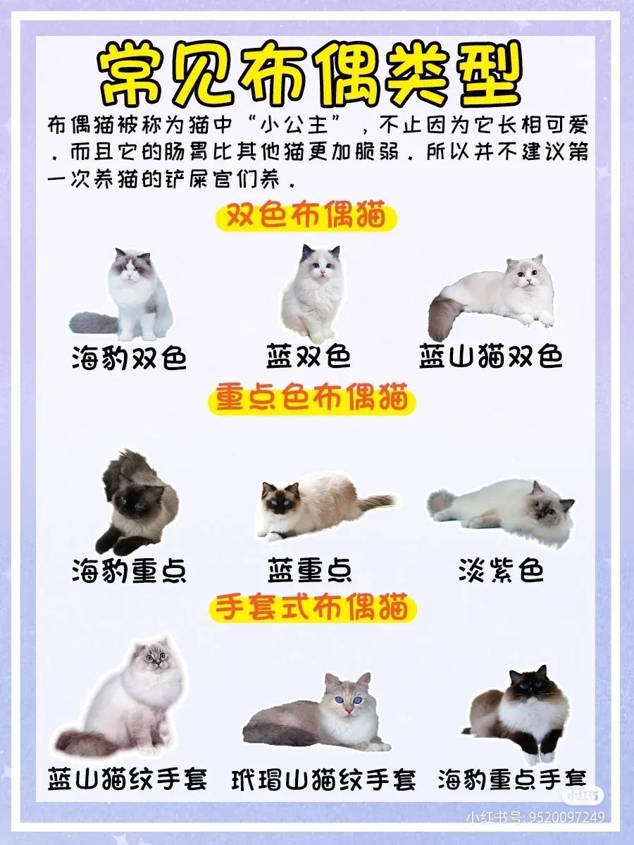 常见种类:双色布偶:海豹双色、蓝双色、蓝山猫双色。
