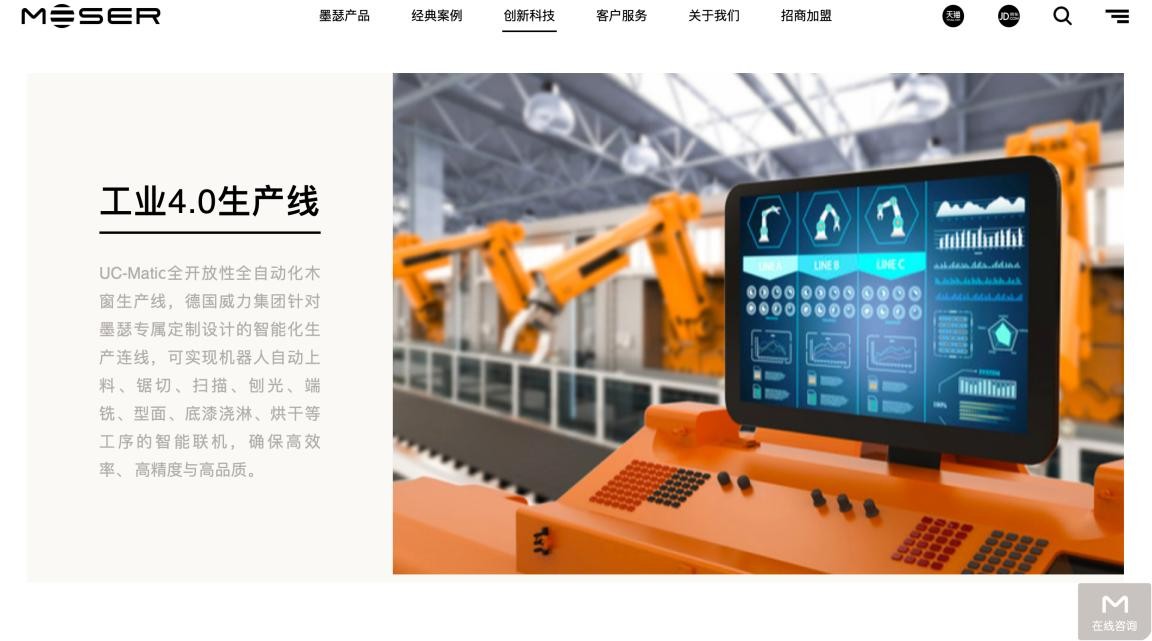 官网涵盖墨瑟全系产品,线上即可漫游墨瑟智能工厂,探索墨瑟至臻品质密码。