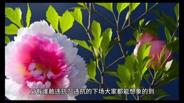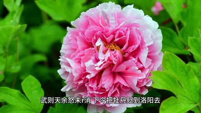 有人回答说这是牡丹,武则天余怒未消下令把牡丹贬到洛阳去。谁知这牡丹刚到洛阳便生根发芽开出美丽的花朵,武则天知道后更加生气了,下令火烧牡丹。无情的大火映红了天空,棵棵牡丹在大火中痛苦地挣扎呻吟。然而人们却惊奇发现牡丹虽枝干已焦黑,但那盛开的花朵却更加夺目,这也是牡丹被称为"焦骨牡丹"的原因。