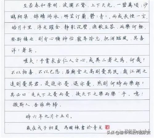 一、冯国栋硬笔楷书《岳阳楼记》