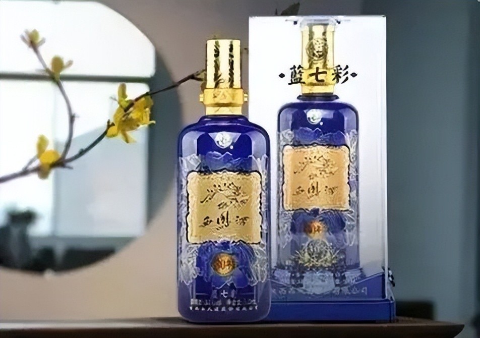 蓝七彩30年,西凤酒主导的重点大单品之一,是奠定次高端白酒市场的形象产品。高级质感透明亚克力材质外盒,瓶身呈现蓝宝石般色泽,配以鎏金图案纹理,天香牡丹金线勾边花纹环绕,华贵典雅、寓意吉祥。